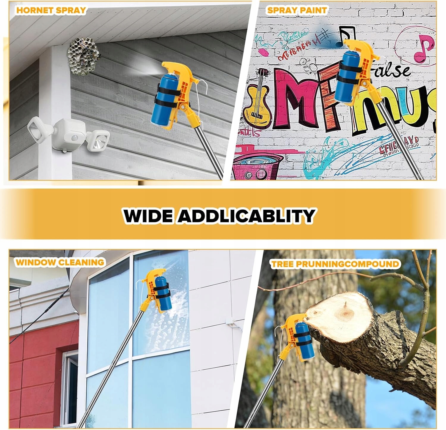 ⭐ Najważniejsze zalety✔️ Solidne materiałyAdapter wykonany z wytrzymałego nylonu, a teleskopowy kij ze stali nierdzewnej o długości aż 2,8 m. Konstrukcja odporna na rdzę i intensywną pracę.✔️ Stabilny i bezpieczny podczas pracyWzmocniona podstawa oraz skrzydełkowe mocowania gwarantują pewne trzymanie puszki. Pasek zaciskowy zabezpiecza spray przed wypadnięciem nawet przy dłuższym użytkowaniu.✔️ Precyzyjne aplikowanie pod różnymi kątamiRegulowany adapter pozwala ustawiać puszkę pod różnymi kątami, co umożliwia dokładne nanoszenie środka z dużej wysokości – bez drabin i ryzyka upadku.✔️ Ergonomiczna obsługaLekka konstrukcja i wygodny uchwyt ułatwiają pracę. Montaż jest prosty: włóż spray w adapter, zapnij pasek i podłącz teleskop.✔️ Uniwersalne zastosowaniePasuje do większości puszek o wysokości 13–24 cm. Idealny do:➡️ środków na osy i szerszenie,➡️ farb i lakierów w aerozolu,➡️ środków czyszczących do okien,➡️ smarów, aerozoli technicznych,➡️ sprayów do drzew, testów dymowych i wielu więcej.