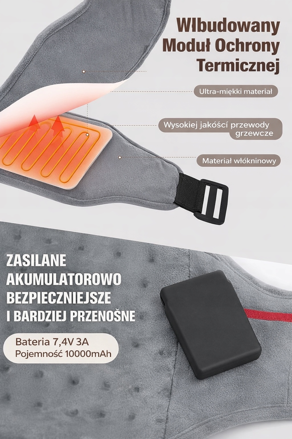 Bezprzewodowy pas grzewczy z powerbankiem 10000 mAh zapewnia komfortowe ciepło gdziekolwiek jesteś ✔️ w domu, pracy, na spacerze czy w podróży.