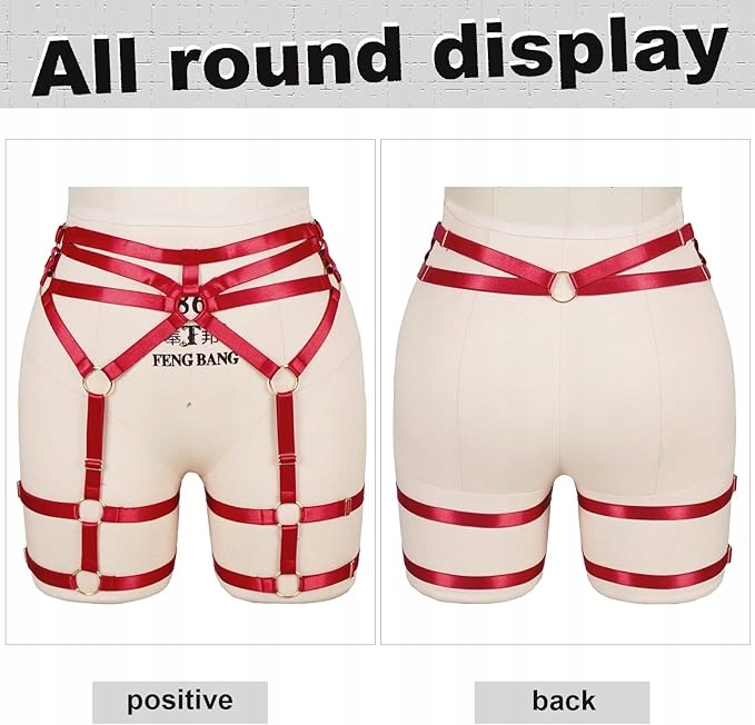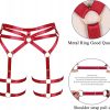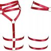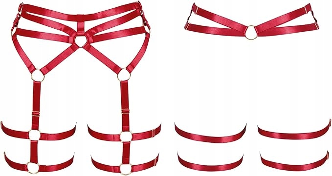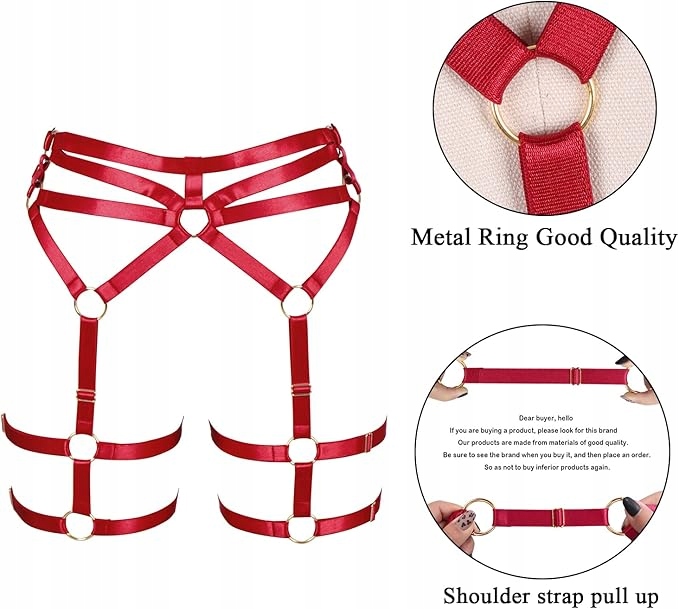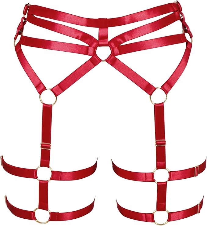 ✨Damski body harness z podwiązkami – czerwony (kółka srebrne)