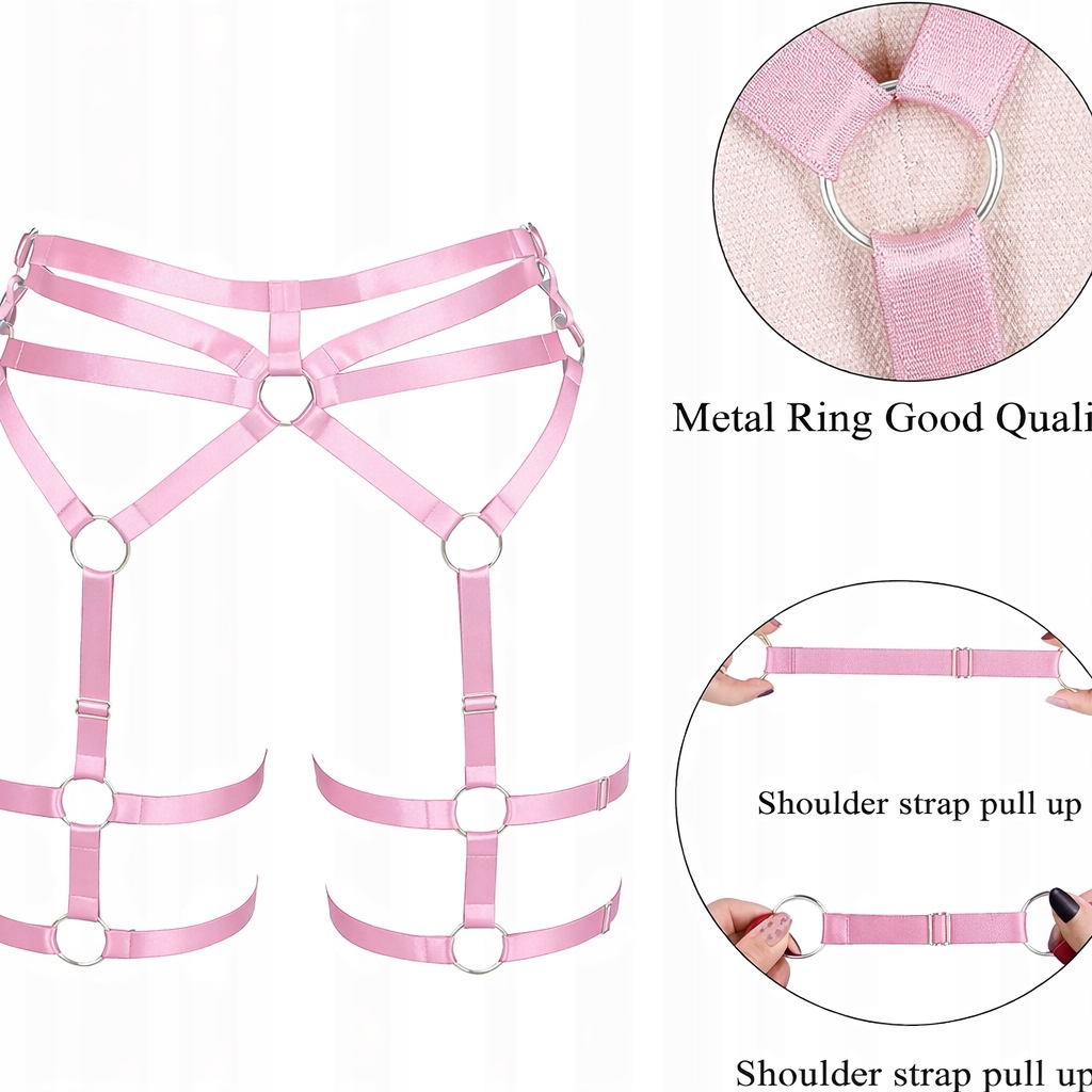 Bielizna Szelki Body Harness Damski Różowy Punk Gothic