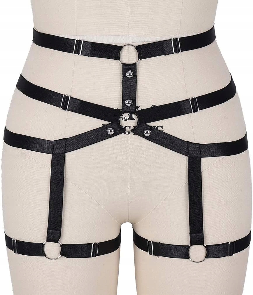 Body Harness Damski Regulowany Punk Gothic Czarno-Srebrny