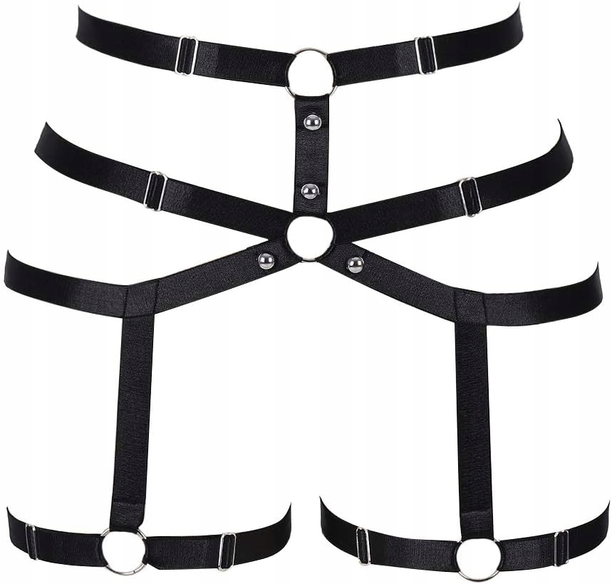 Body Harness Damski Regulowany Punk Gothic Czarno-Srebrny