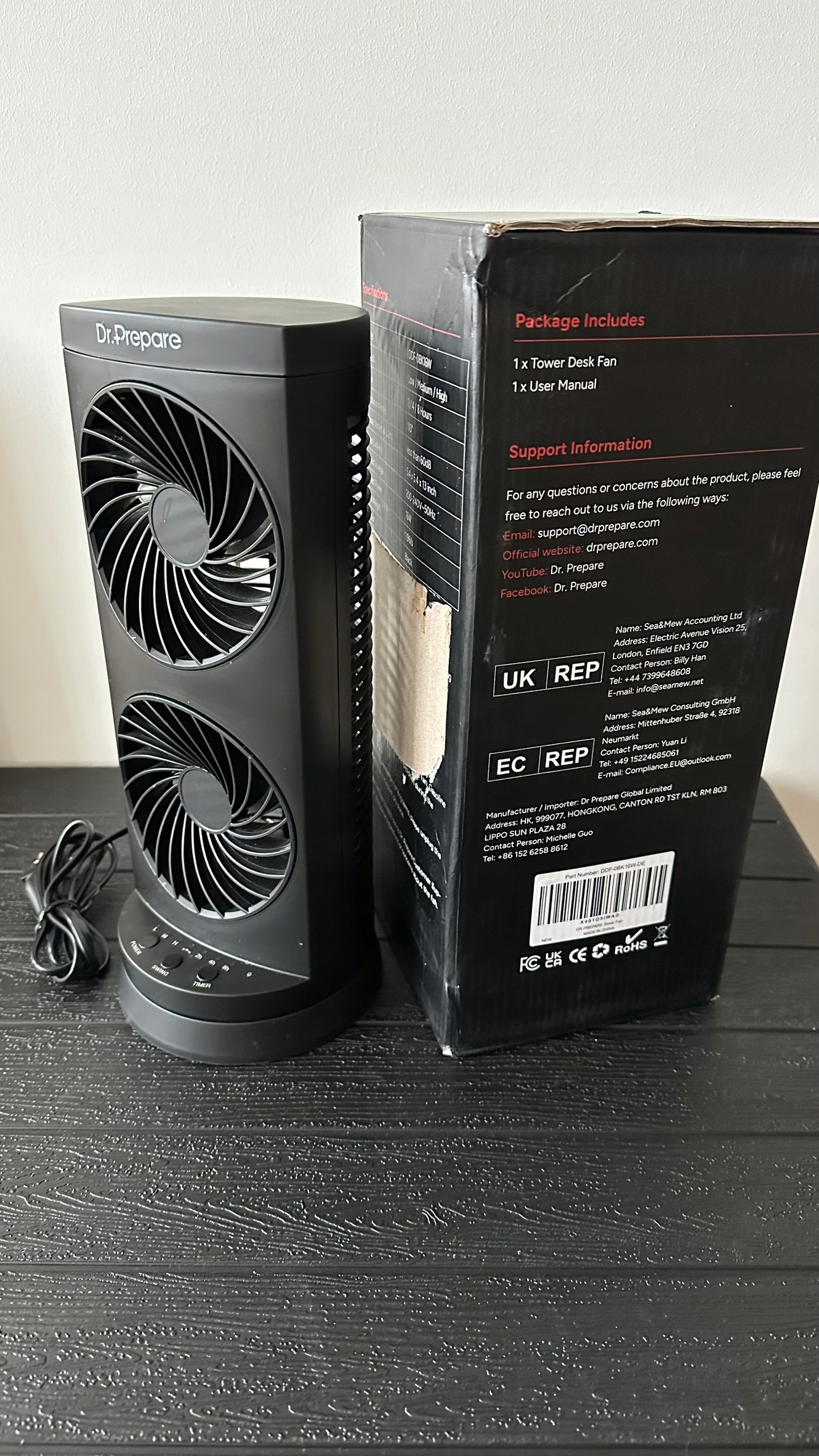CICHY PODWÓJNY WENTYLATOR KOLUMNOWY WIEŻOWY DR.PREPARE OSCYLACJA 110°