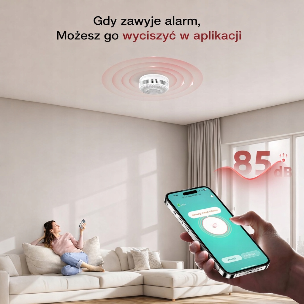 Czujnik Dymu WiFi Smart Bateria Tuya PHYSEN
