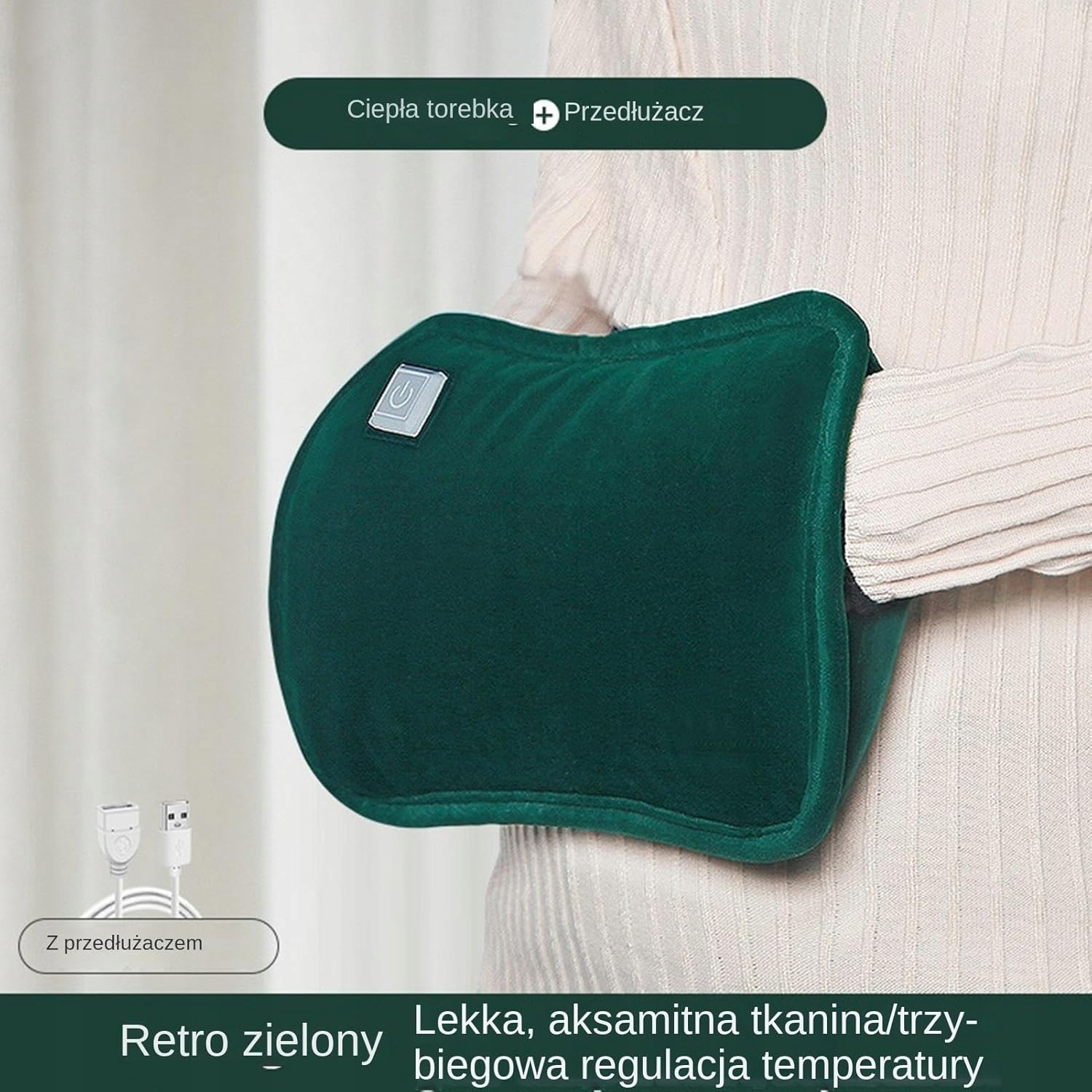 Elektryczny Podgrzewacz do Rąk USB | 3 Poziomy Ciepła | 30×19 cm | ZIELONY