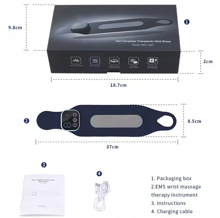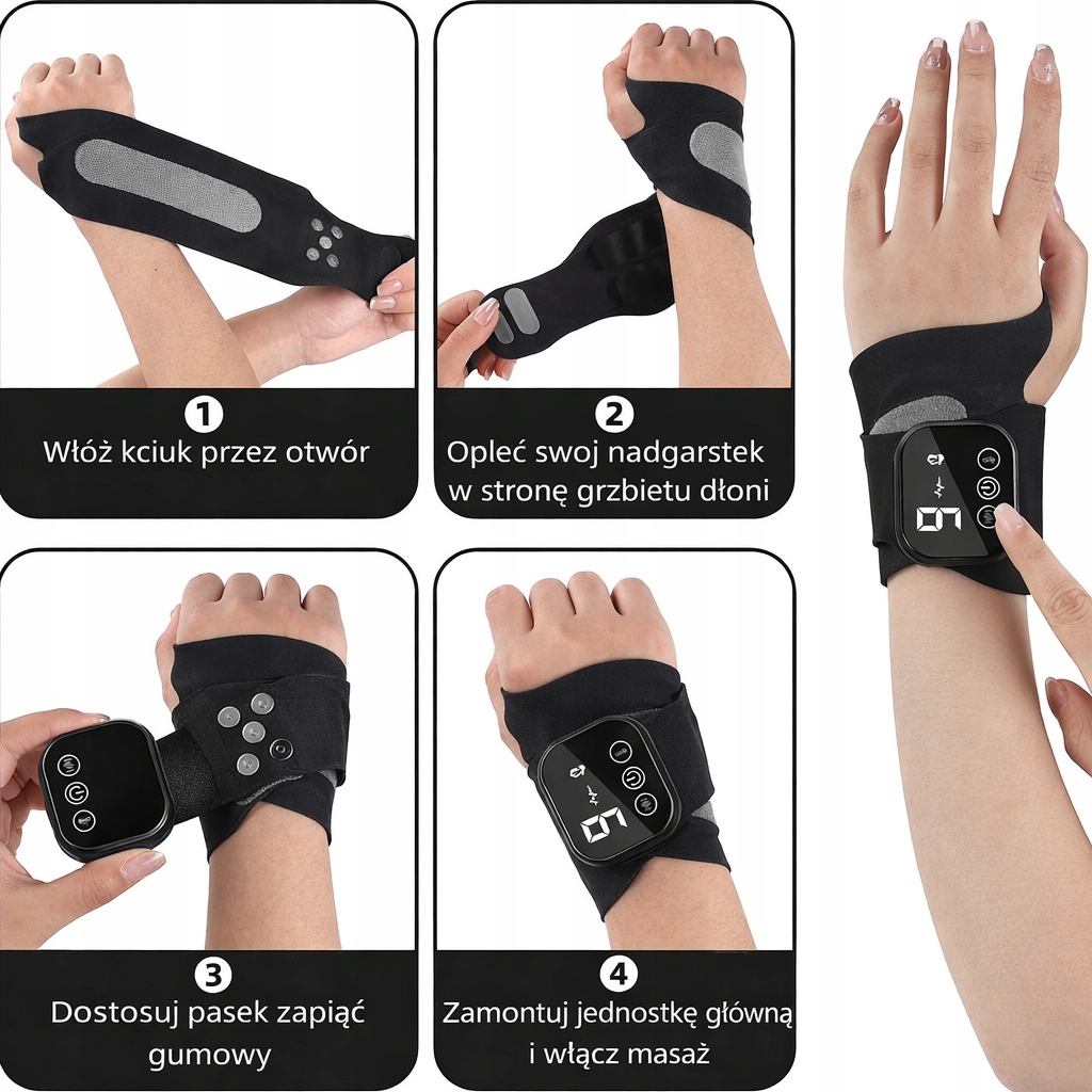 EMS TENS Masażer Nadgarstka Bezprzewodowy z ciepłem czarny