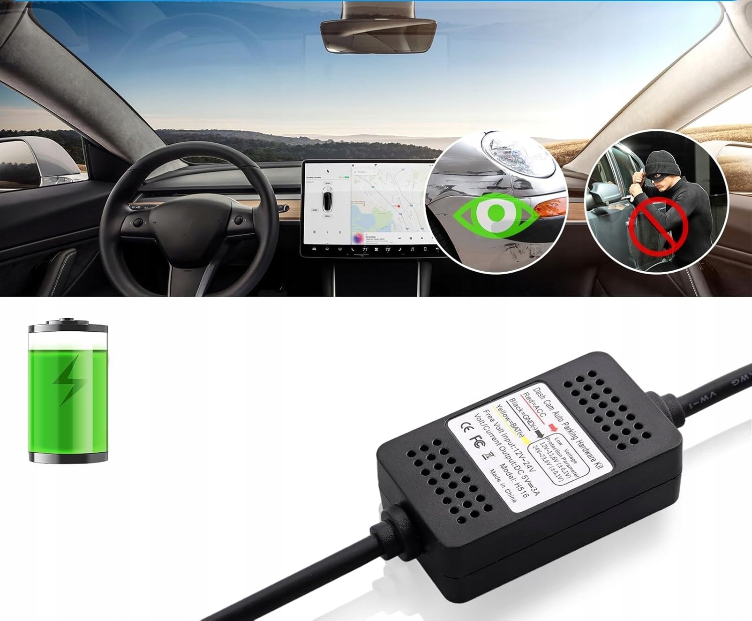 ⭐ Monitorowanie Parkingowe: Stałe Zasilanie 24/7: Bezpośrednie podłączenie kamery do akumulatora umożliwia monitorowanie pojazdu przez całą dobę, chroniąc przed kradzieżą. Tryb ACC: Automatyczne przełączanie między trybem parkingowym a trybem ACC, umożliwiając włączanie i wyłączanie kamery z zapłonem.