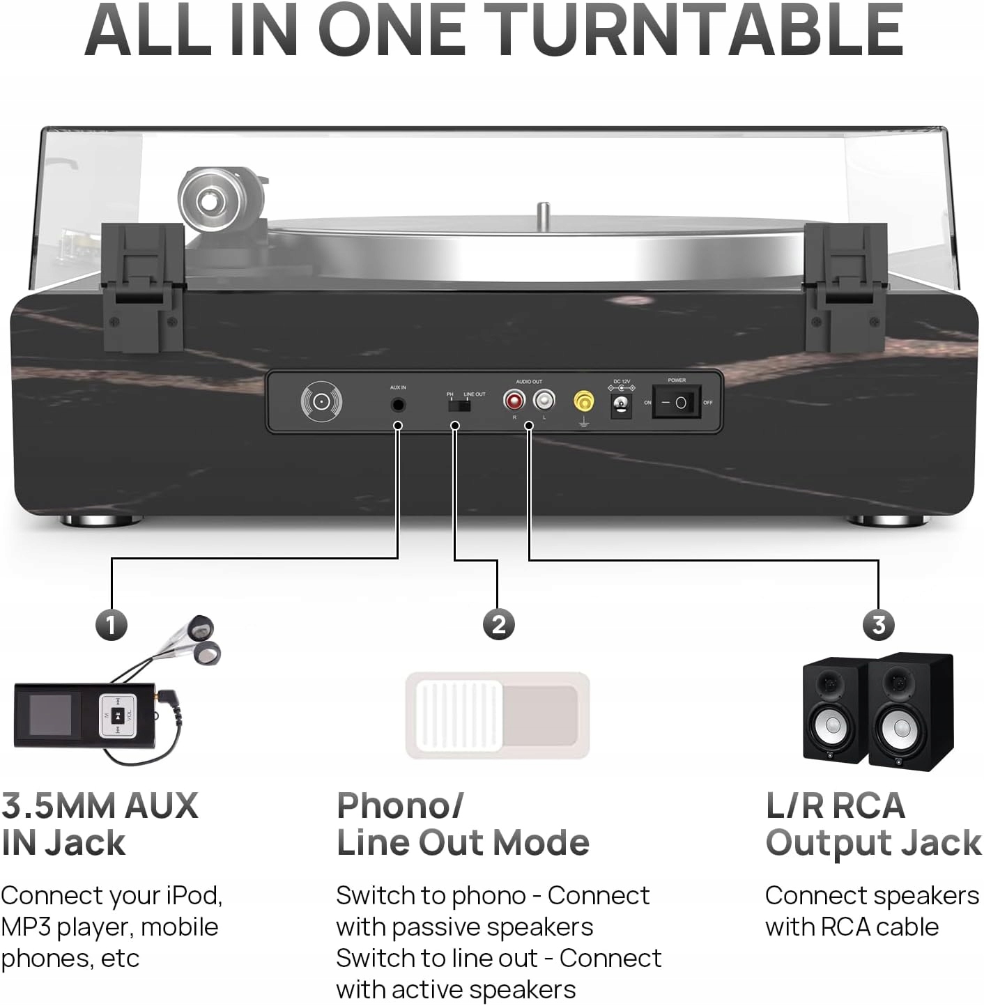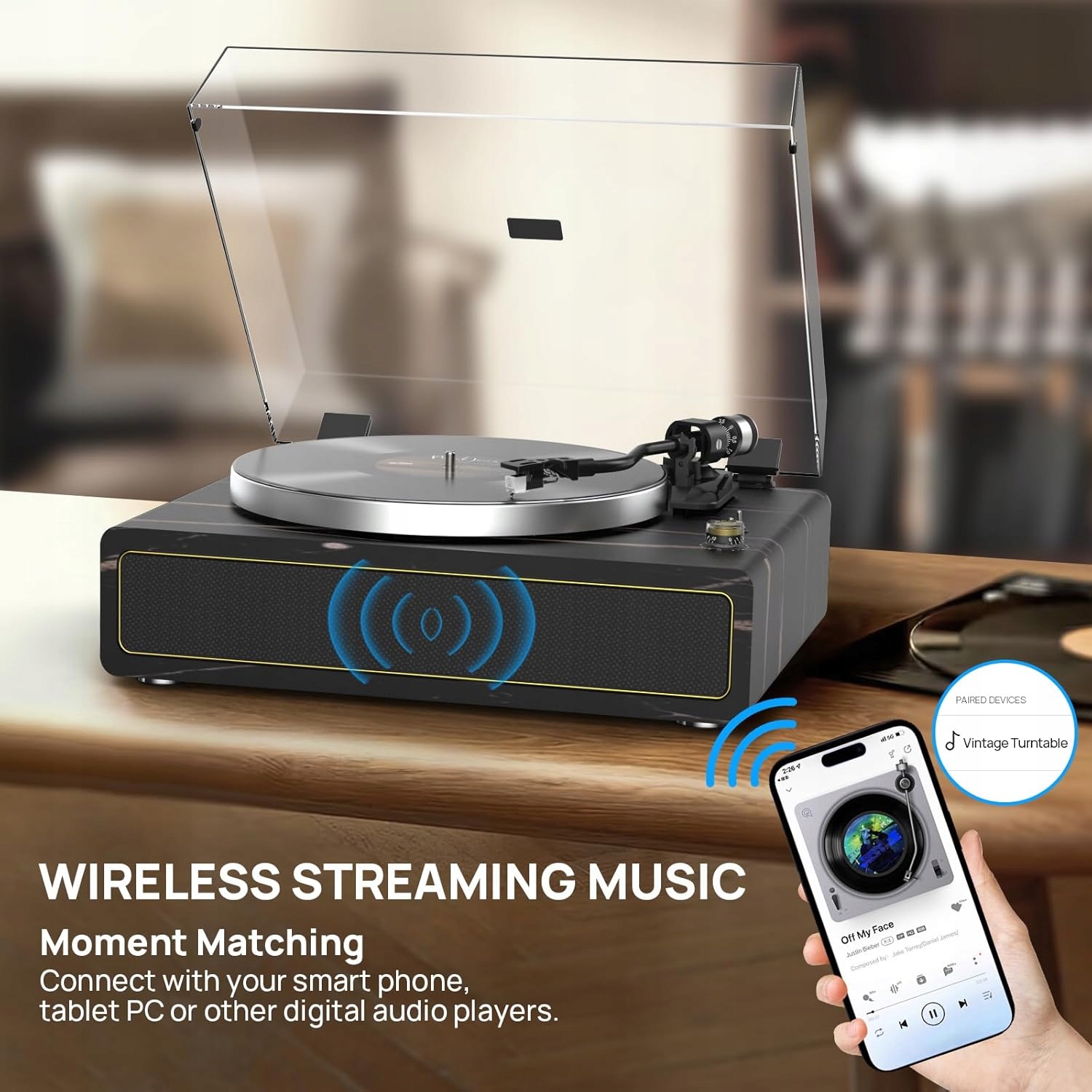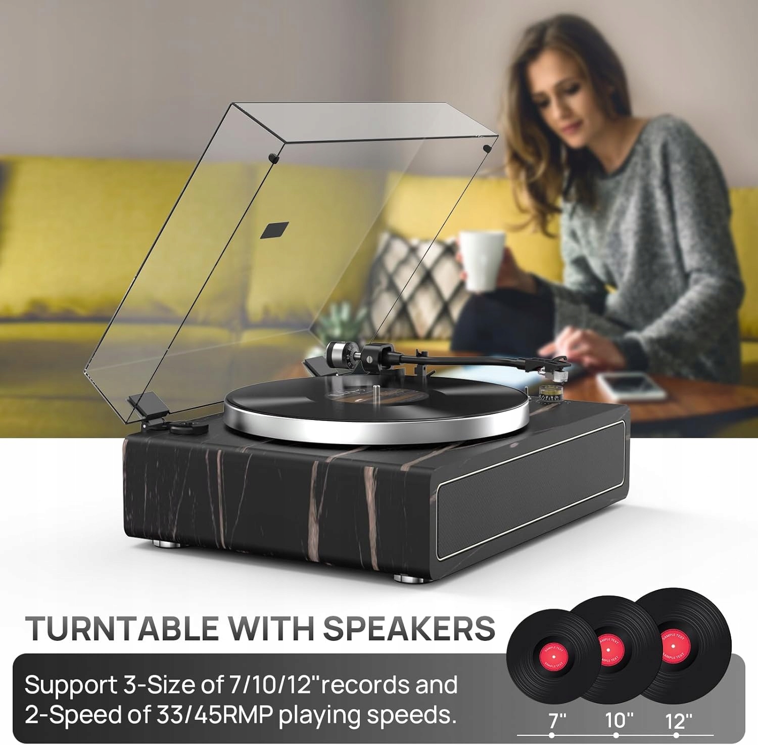 Gramofon Winylowy z Głośnikami – napęd paskowy 33/45 RPM, Bluetooth