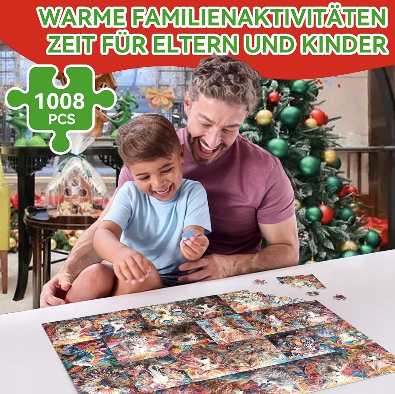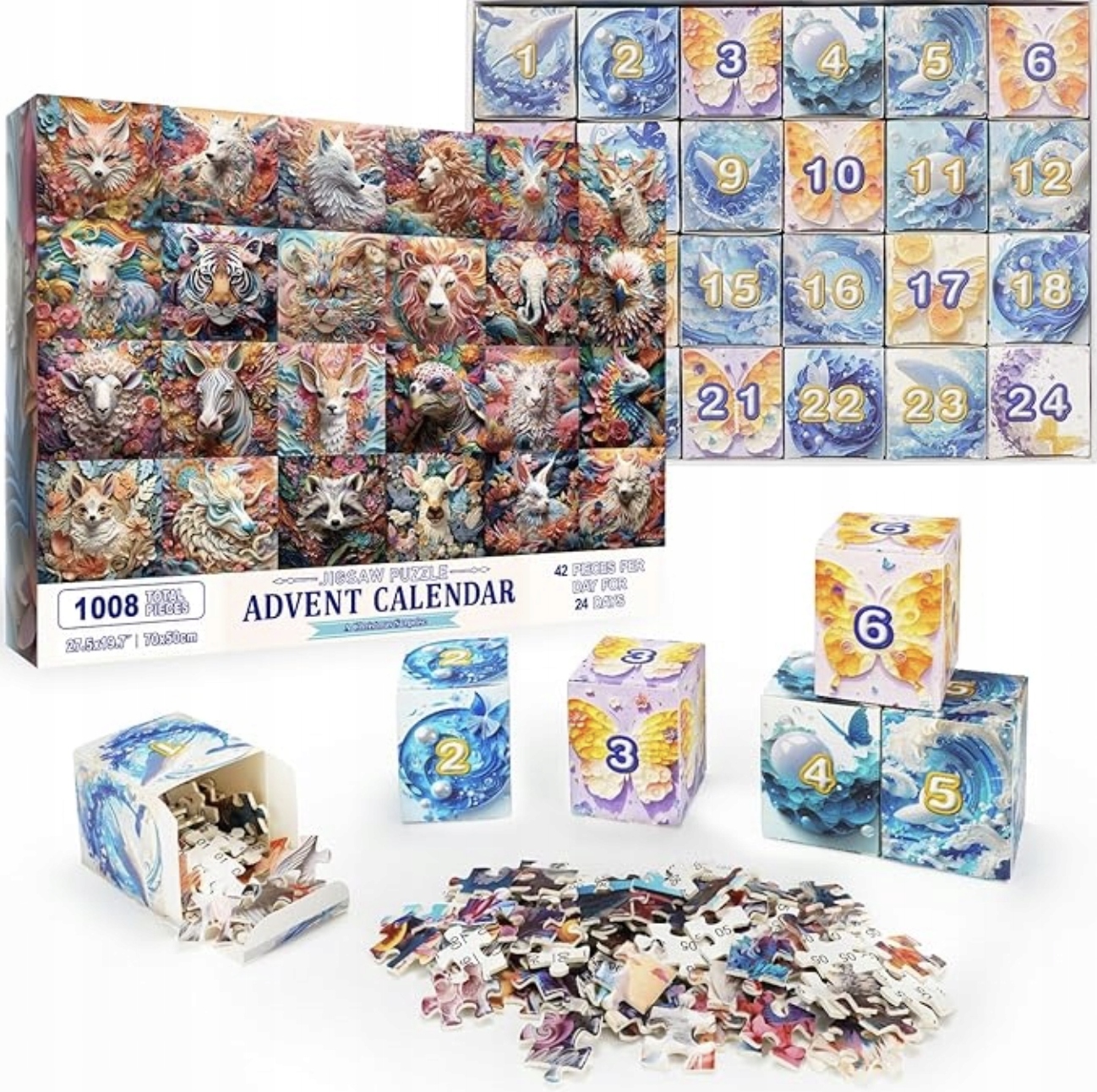 ⭐ Najważniejsze cechy produktu:✔️ 1008 elementów – komplet puzzli o wymiarach 70 x 50 cm po ułożeniu.✔️ Kalendarz adwentowy – każdego dnia przez 24 dni odkrywasz 42 nowe elementy!✔️ Piękna grafika – unikalne, artystyczne ilustracje zwierząt, pełne kolorów i detali.✔️ Jakość wykonania – solidne puzzle, które idealnie do siebie pasują.✔️ Rodzinne zajęcie – świetna zabawa dla dzieci (powyżej 3 roku życia), dorosłych i całej rodziny.