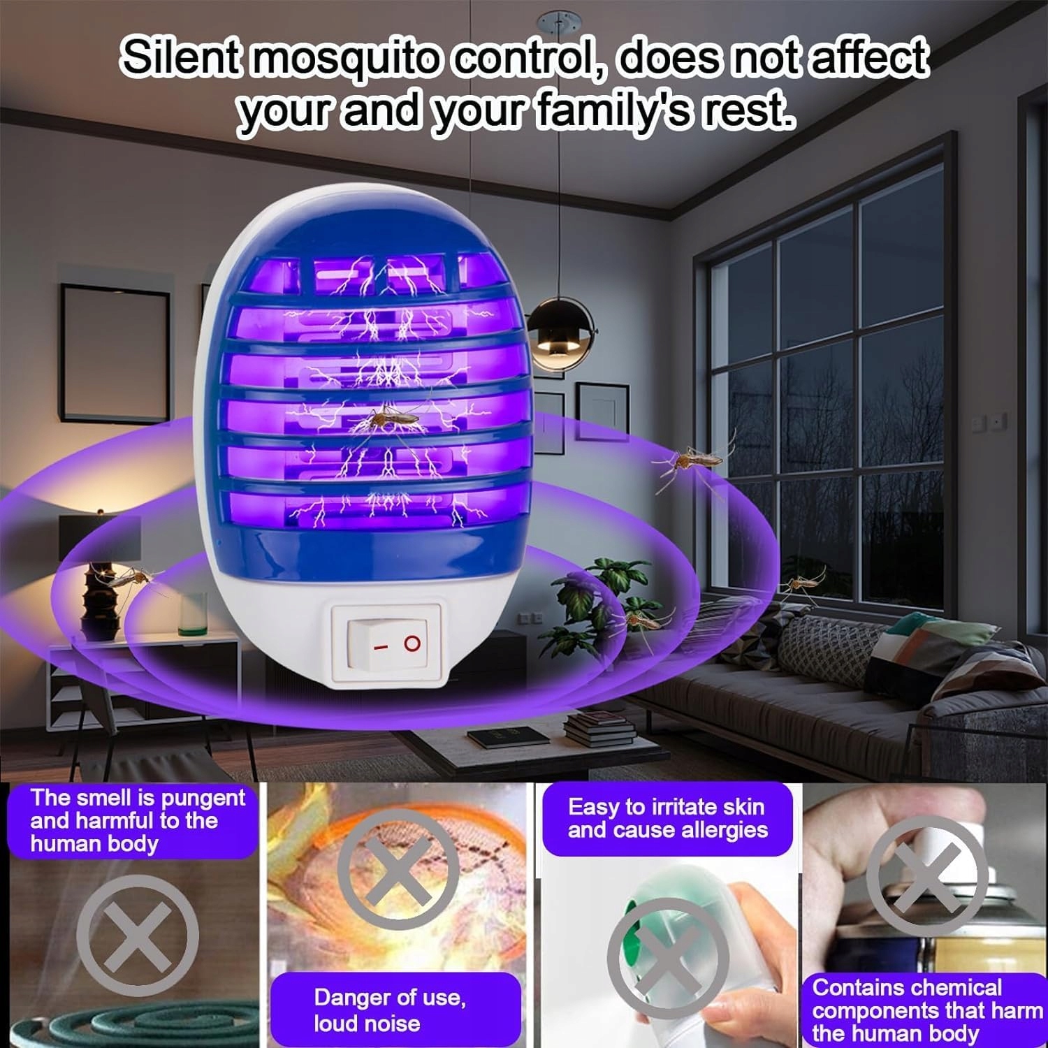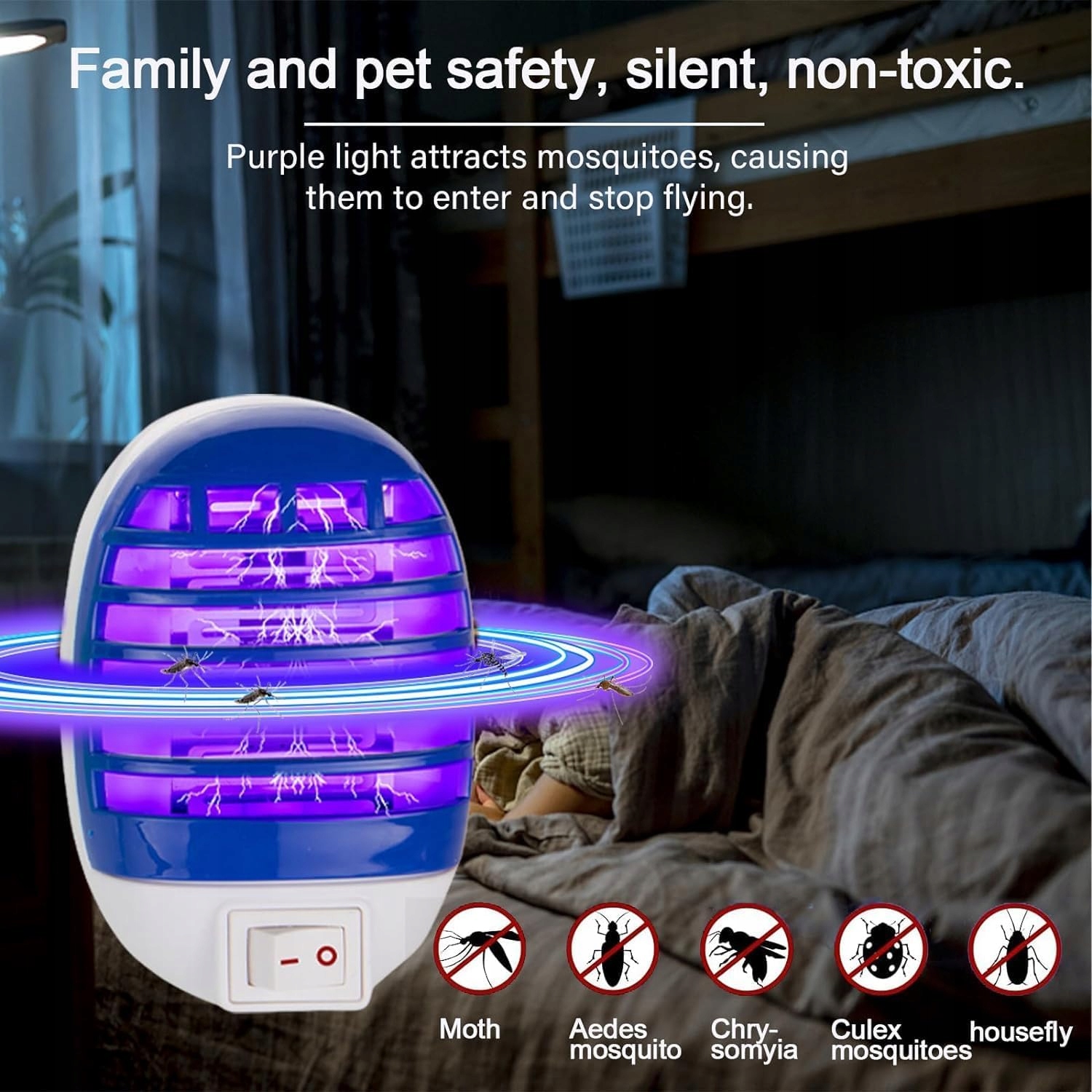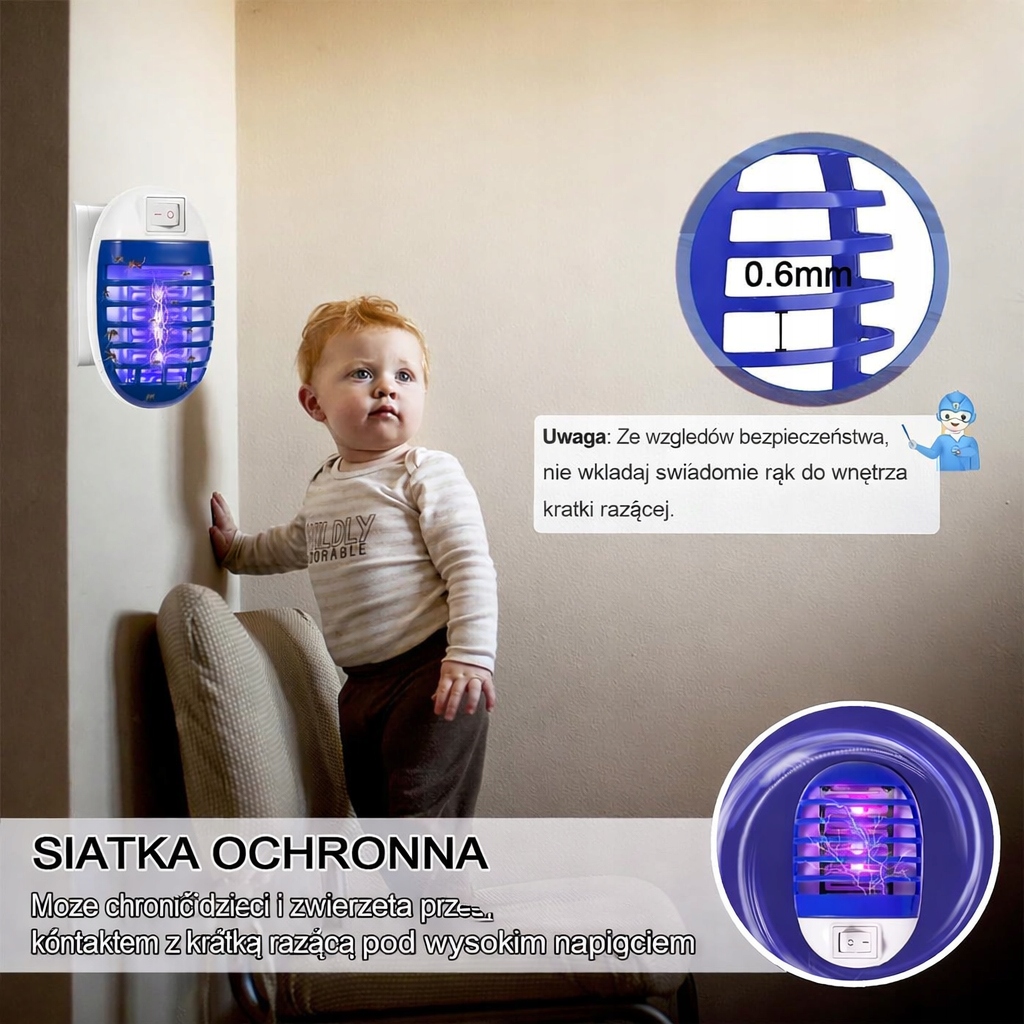 Skuteczna i bezpieczna metoda zwalczania komarów, much oraz innych owadów latających. Wystarczy podłączyć do gniazdka – działa automatycznie i bez hałasu.