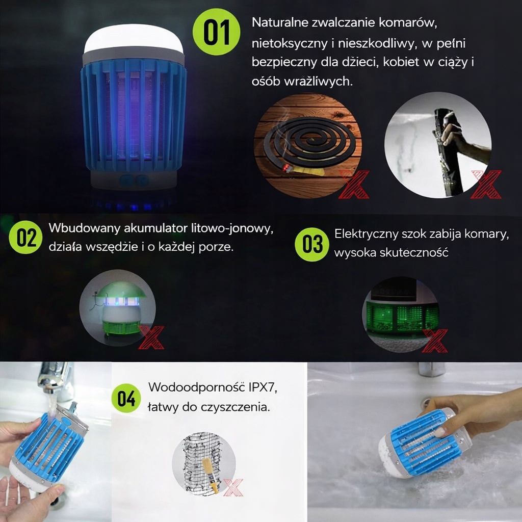 Lampka Solarna LED AICase 10W odstraszacz komarów UV IP67