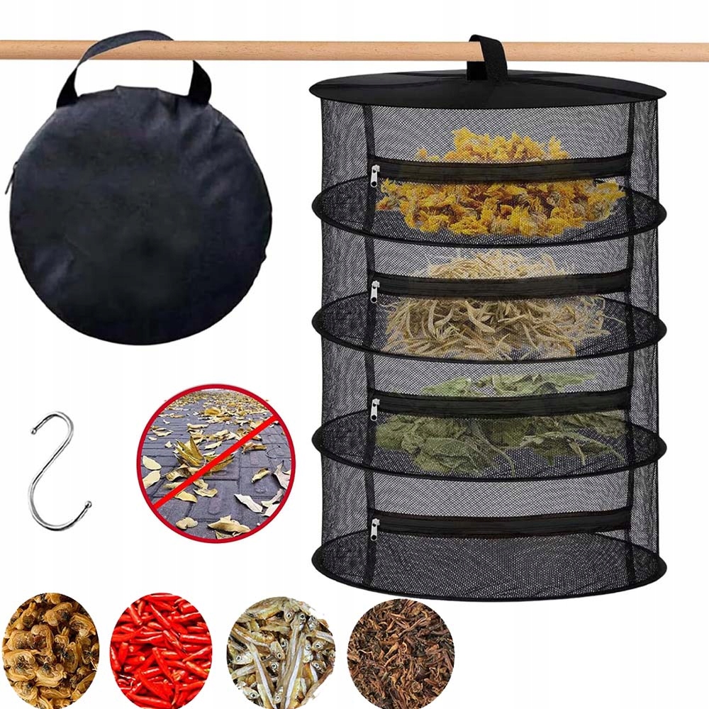 Praktyczna suszarka siatkowa do suszenia ziół, kwiatów, nasion i roślin. Idealna do namiotów uprawowych, szklarni oraz domowego użytku.