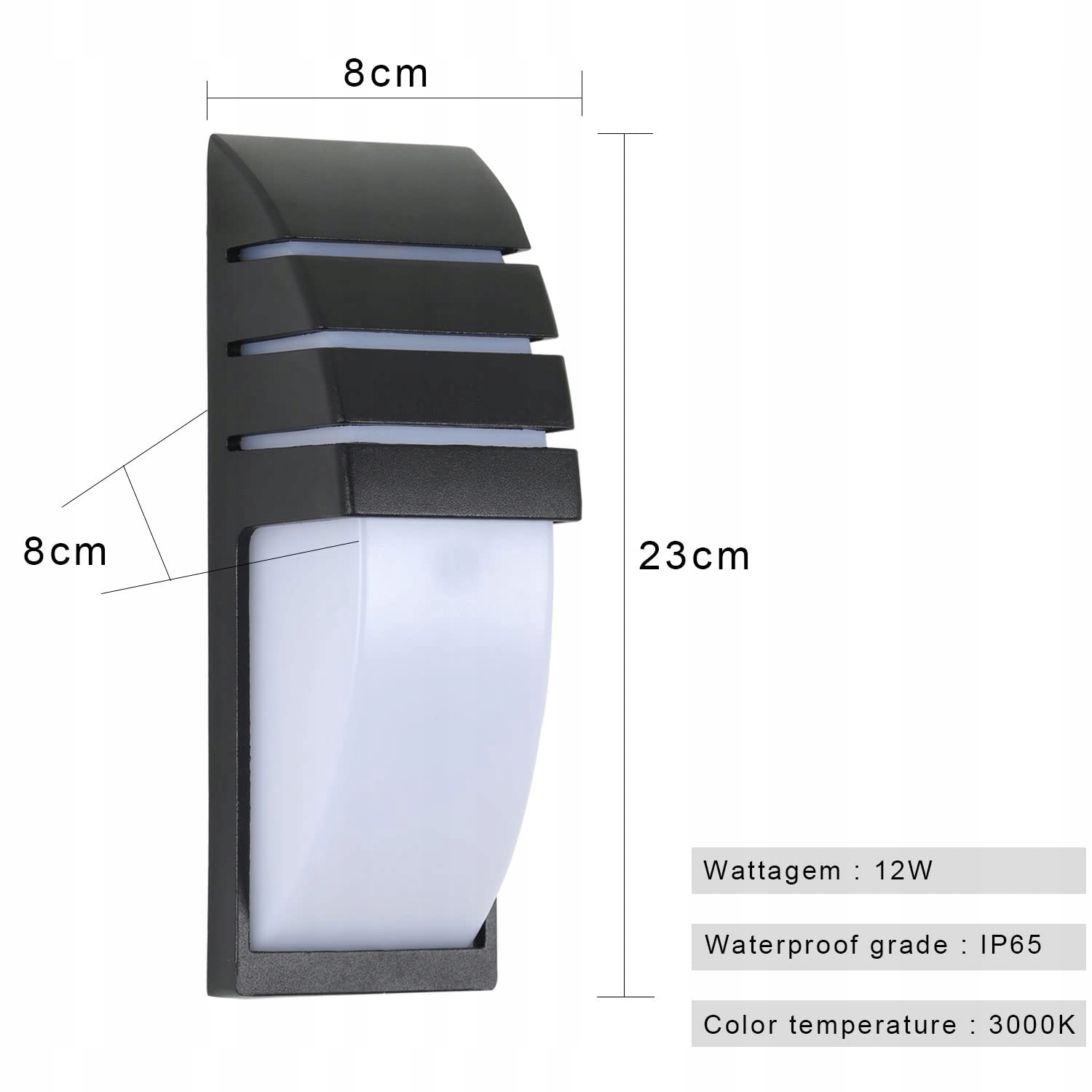 Wymiary lampy: dług. 23 cm, szer. 8 cm, wys. 8 cmTemperatura barwowa: 3000 K – ciepła biel, idealna do relaksuTyp źródła światła: LED, co zapewnia długą żywotnośćNapięcie: 220 V, idealne dla standardowych instalacji