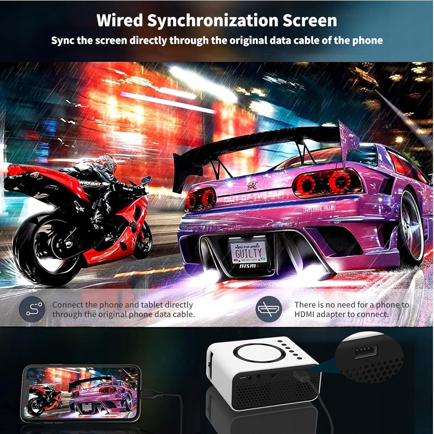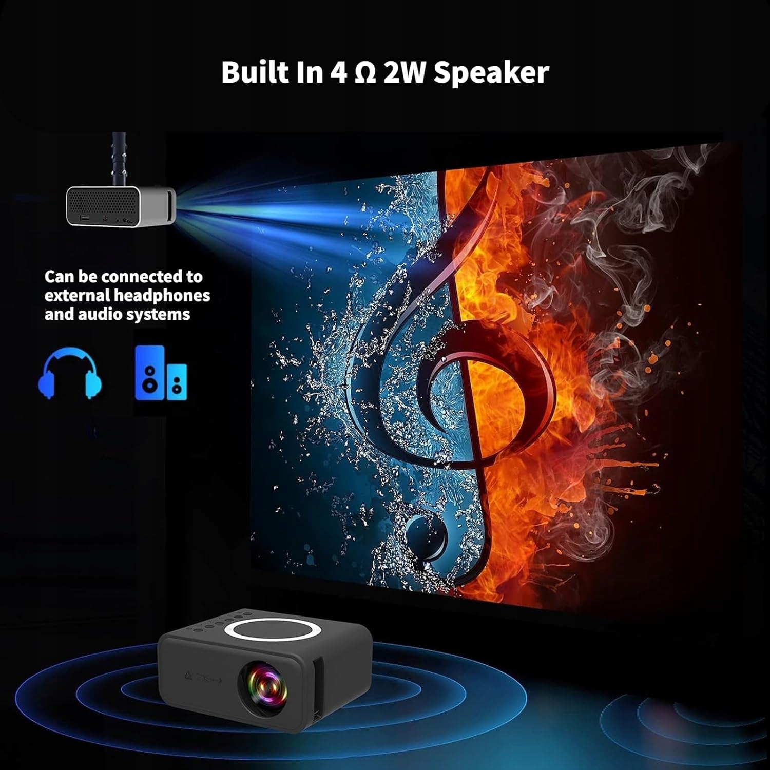 Mini projektor 1080P Full HD przenośny WiFi HDMI