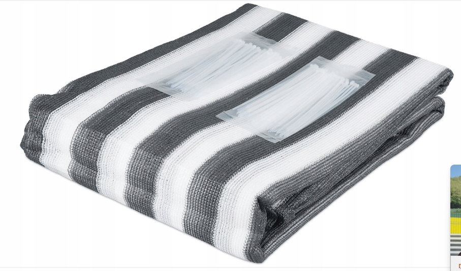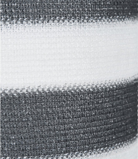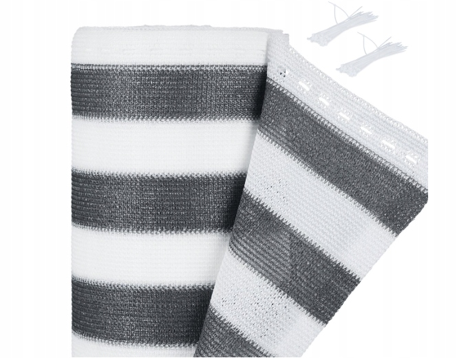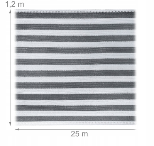 ➡️ Specyfikacja✔️ wymiary: 1,2 × 25 m✔️ kolor: szaro-biały (paski)✔️ materiał: HDPE✔️ współczynnik zacienienia: ~85%✔️ przepuszczalność wiatru: ~10%