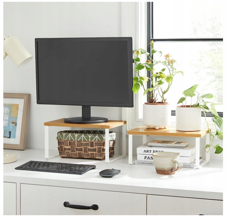 ▶️ W biurze: ułóż półki jedna na drugiej na biurku, aby zwiększyć przestrzeń do przechowywania. Uporządkuj swój kubek, zszywacz, spinacze i inne codzienne artykuły biurowe na różnych poziomach, aby pracować na uporządkowanym biurku.