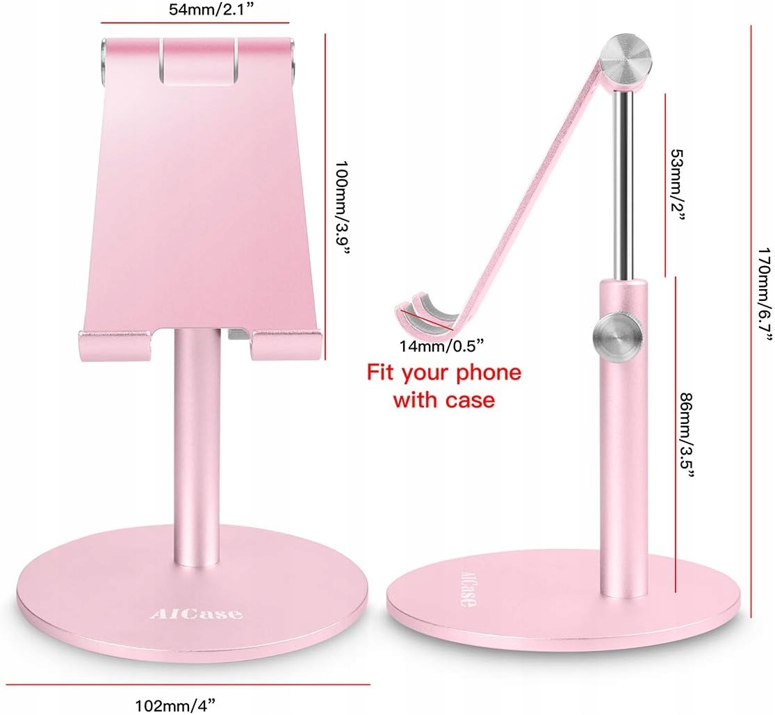 Stojak na tablet telefon AICase regulowany 360° aluminium Różowy