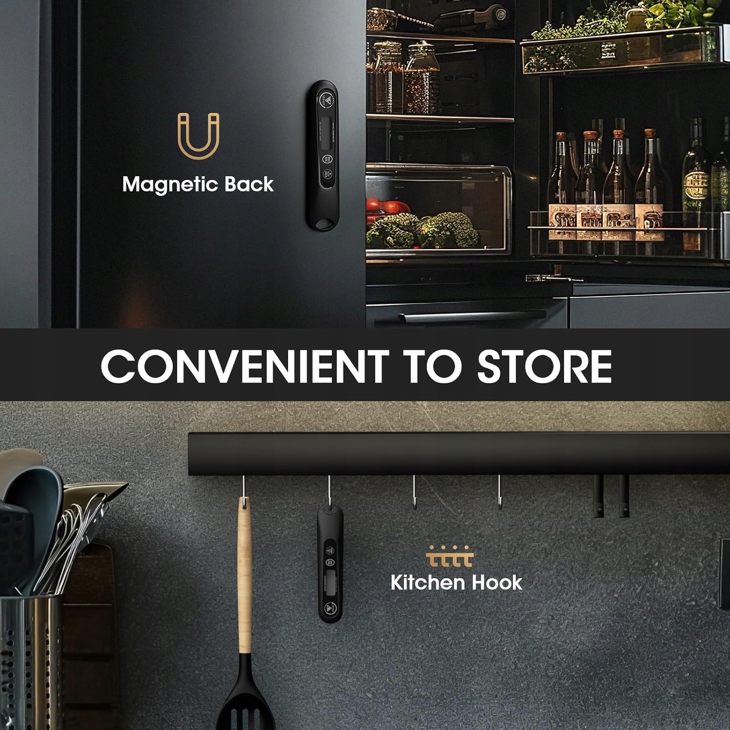 ✅ Wbudowany magnes i otwór do zawieszenia – możesz przymocować termometr do lodówki lub powiesić na haczyku. Idealny do przechowywania – zmieści się w szufladzie lub torbie piknikowej.