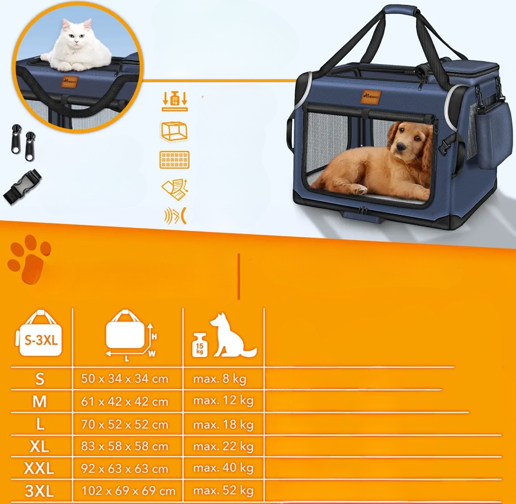 ❇️TRESKO® składana skrzynia dla psa granatowa (S 50x34x34cm) z matą do lizania, łopatką i odblaskamiDzięki naszemu transporterowi możesz bezpiecznie i wygodnie przewozić psa na tylnym siedzeniu.Pluszowy koc o grubości 10 mm, cztery odblaski świetlne zapewniające bezpieczeństwo w ciemności.Siatkowe okno wykonane z oddychającej tkaniny siatkowej, antypoślizgowe gumowe nóżki, rurowa stalowa rama i odporna na rozdarcia tkanina 600D Oxford zapewniają, że psy i koty czują się komfortowo i są chronione podczas podróży.