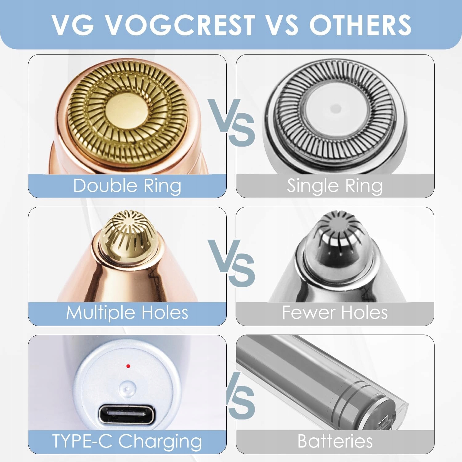 ⭐Trymer do brwi i twarzy 2w1 VG VOGCREST LED Niebieski⭐