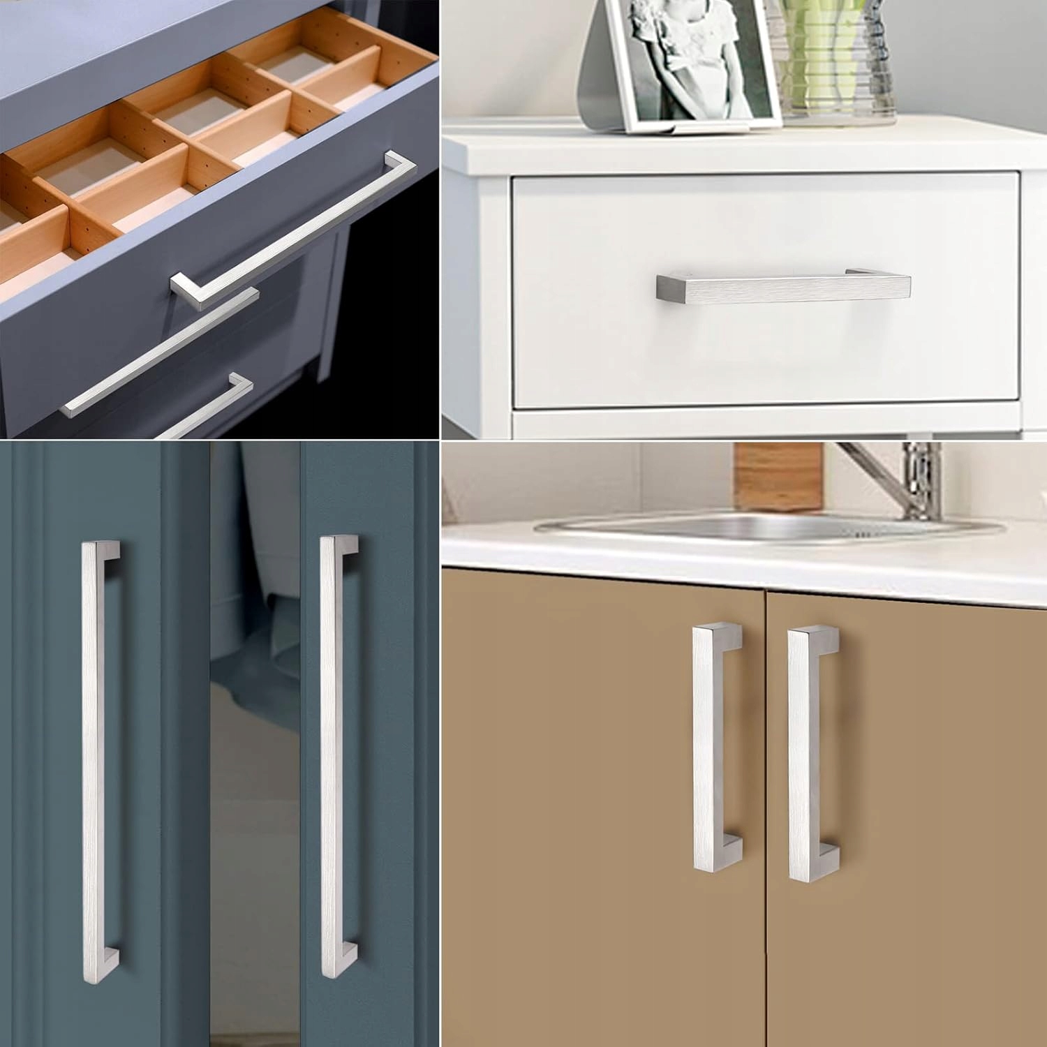 Stylowe, kwadratowe uchwyty meblowe w nowoczesnym, europejskim designie. Idealne do kuchni, garderoby i mebli w stylu modern.